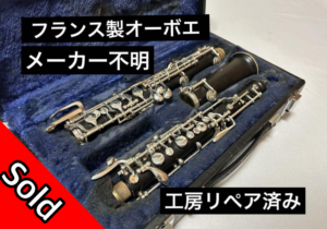新品の無銘オーボエです。 フル装備で、金色のキー仕様、 管体は木製の楽器です。